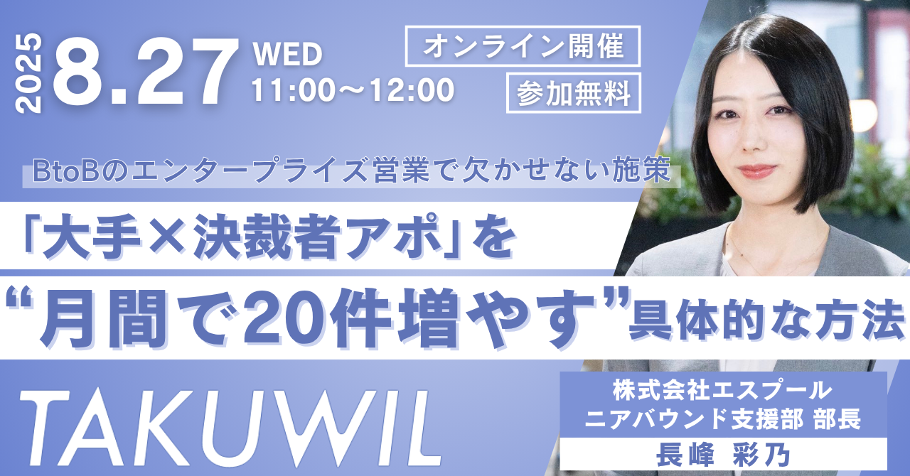 【受付終了】エスプール主催ウェビナー〈BtoBのエンタープライズ営業で欠かせない施策〉「大手×決裁者アポ」を“月間で20件増やす”具体的な方法