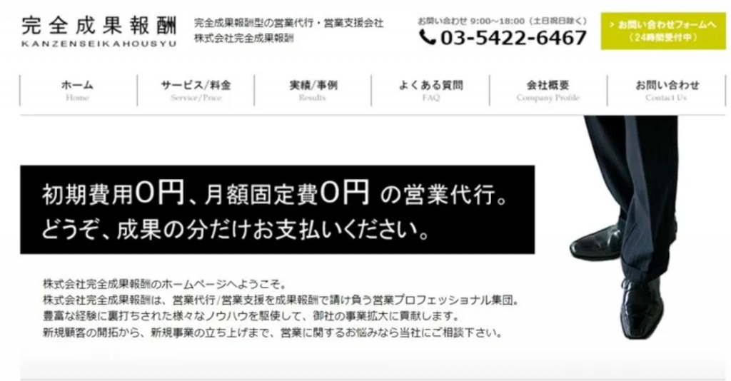 『株式会社完全成果報酬』は、社名の通りアポイント獲得や成約に対する完全成果報酬制を貫く企業です。