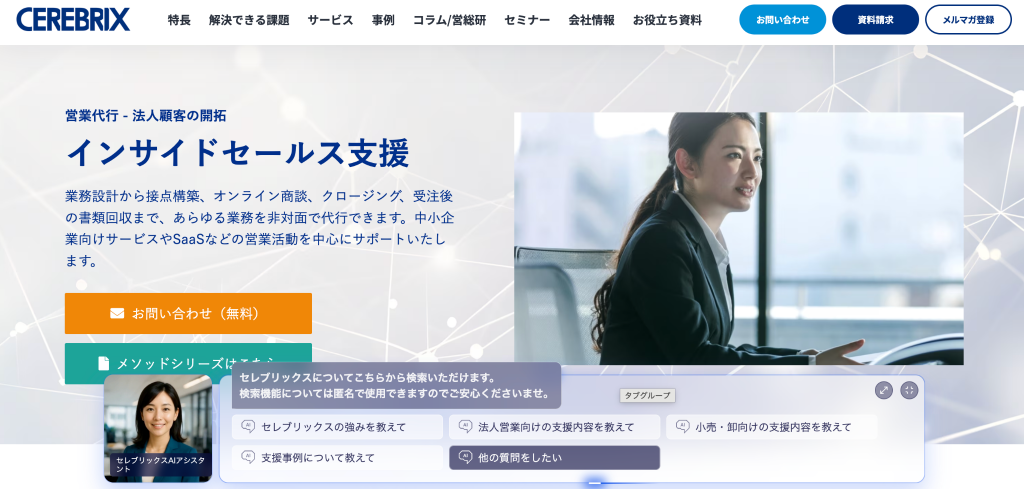 株式会社セレブリックスは、営業支援・コンサルティング領域で長年の実績を持つ企業です。法人・新規開拓領域で最大級となる1,200社・12,000サービス以上の支援実績があります。