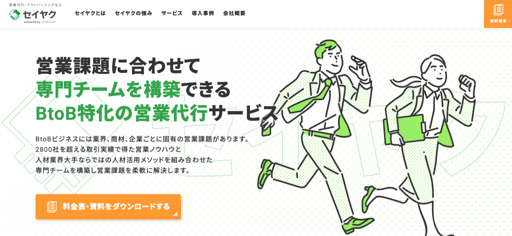 ウィルオブ・ワークが運営する「セイヤク」は、BtoB特化型の営業代行サービスです。