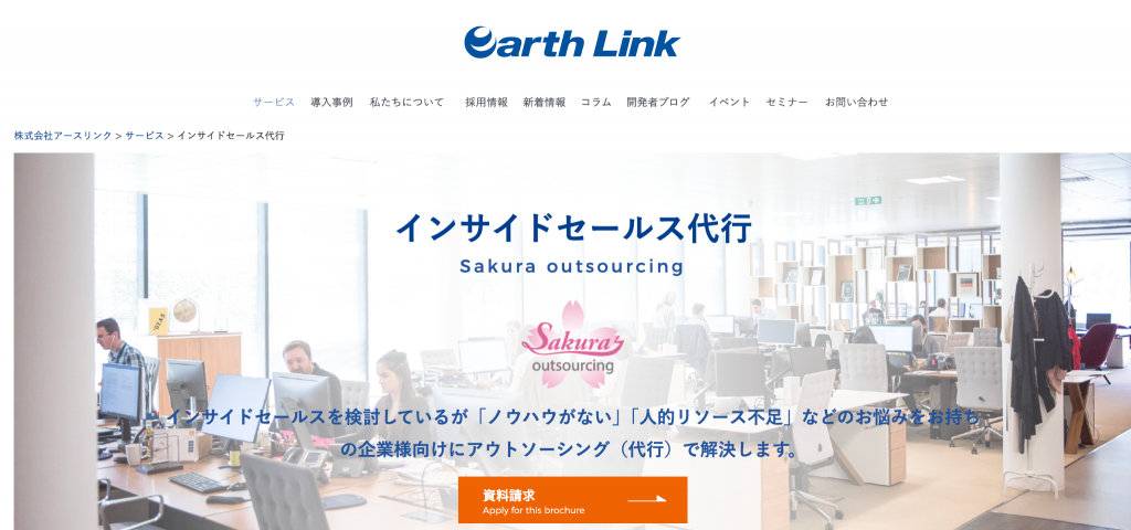 アースリンクのインサイドセールス代行「Sakura outsourcing」は、1,500社以上の導入実績を持つサービスです。IT業界はもちろん、住宅設備の卸売業や製造業、米穀類販売業など、BtoB新規開拓における幅広い業種での支援経験があります。