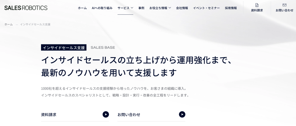| SALES ROBOTICS株式会社 | インサイドセールス専業として1,000社以上の支援実績がある |