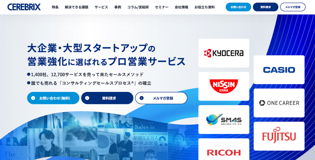 株式会社セレブリックスの営業代行は、リード獲得から受注まで、幅広い営業プロセスに対応しています。これまでに12,700以上の商材を扱ってきた経験から、独自のセールスメソッドを確立している点が強みです。