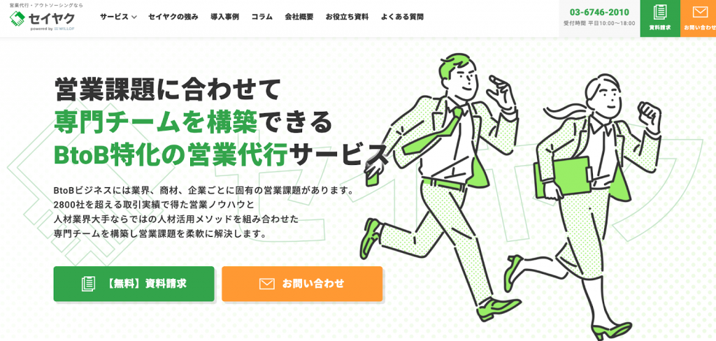 株式会社ウィルオブ・ワークの「セイヤク」は、BtoBビジネスに特化した営業代行サービスです。企業の抱える課題に合わせて、最適な専門チームを構築してくれます。