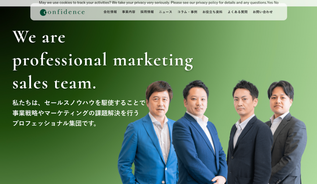 株式会社コンフィデンスは、新規事業の立ち上げ支援において28年の歴史を持つ営業代行会社です。大手企業の新規事業部門やベンチャー企業を中心に、累計1,100社以上の実績を誇ります。