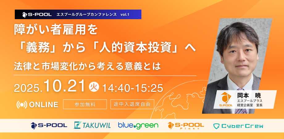 | 問い合わせ先 | 株式会社エスプール タクウィル セミナー事務局(担当:清水聖子) TEL:03-6859-8899(平日10:00~18:00) mail:takuwil@spool.co.jp |